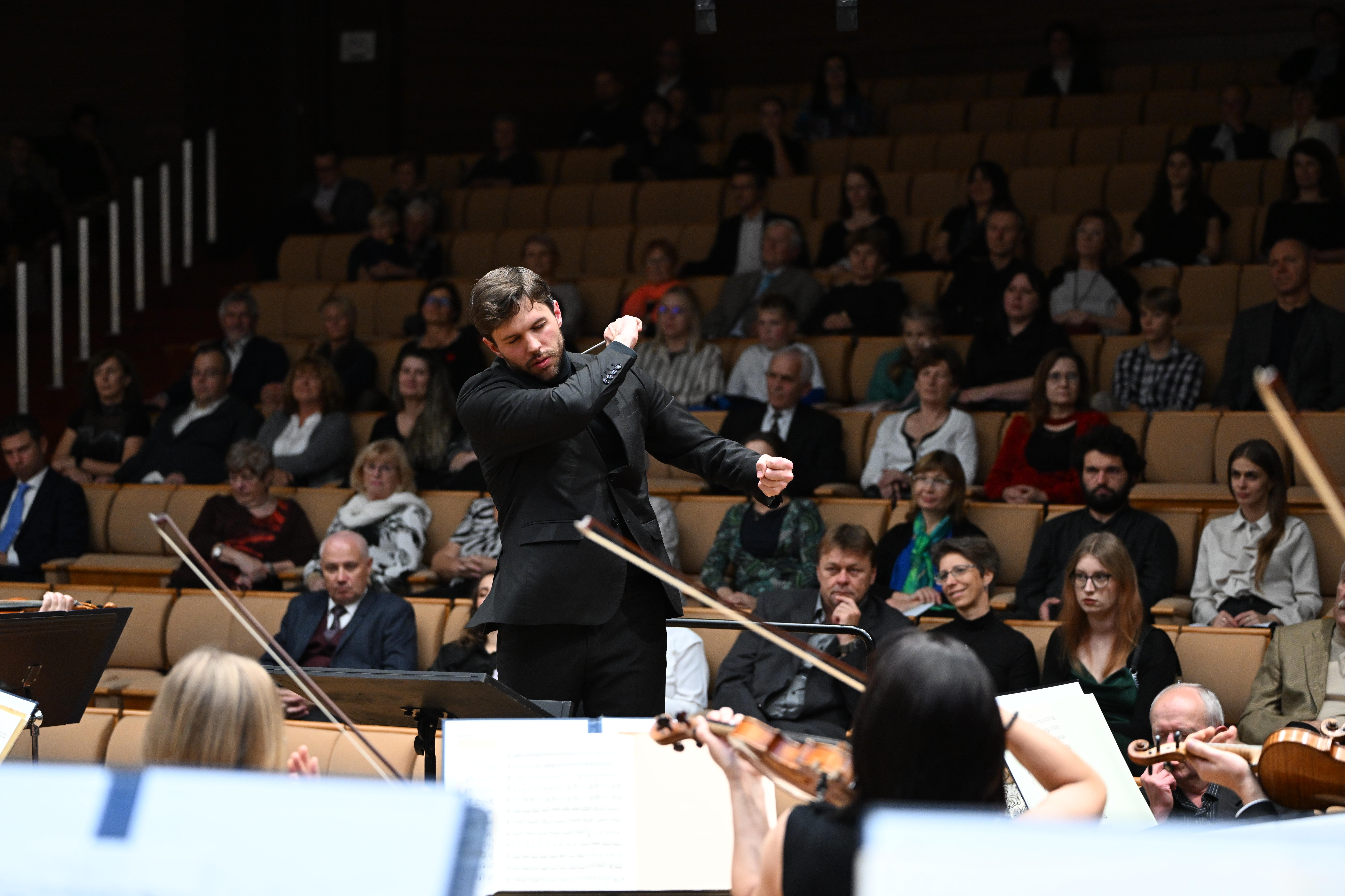 The concert is the culmination of the International Conducting Masterclasses, held in Pardubice for the sixth time. Throughout the week, young conductors from around the world work intensively with the orchestra under the guidance of renowned Austrian conductor and pedagogue Martin Sieghart.